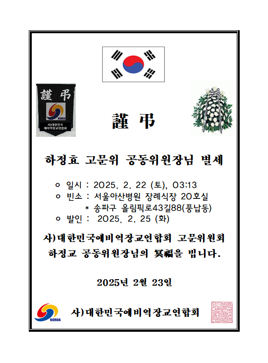 연합회의 큰 힘이 되어 주시던 하정효 고문위원장님께서 별세하셨습니다.